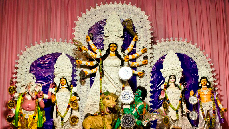 No Durga Pujo is complete and it doesn’t assume the aura without the maddening beats of the dhaks, barrel-shaped drums, with hide stretched tight over the opening, decked with bird feathers and colourful strips of cloths, hung from the shoulders of lean men wearing dhuti-panjabi and played with two wooden sticks. There is almost a frenzied mania infused among onlookers and listeners as they watch the dhakis play. The Statesman correctly describes that these enchanting beats are enough to conjure up the sights and smells of Pujo.